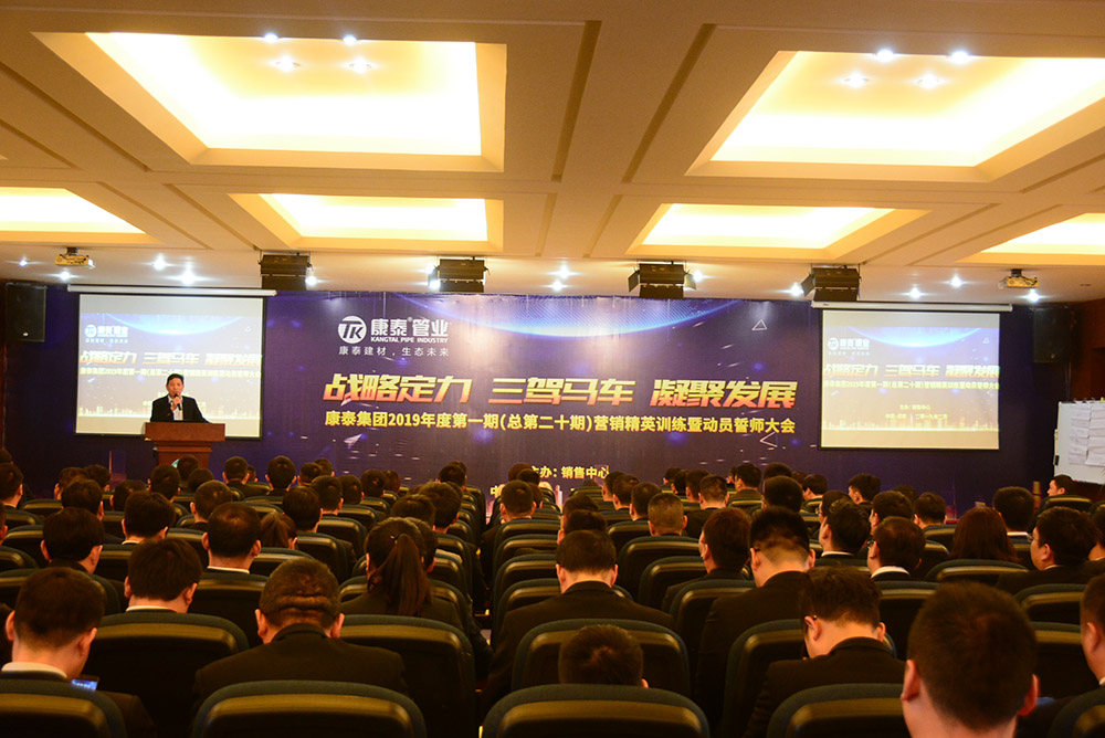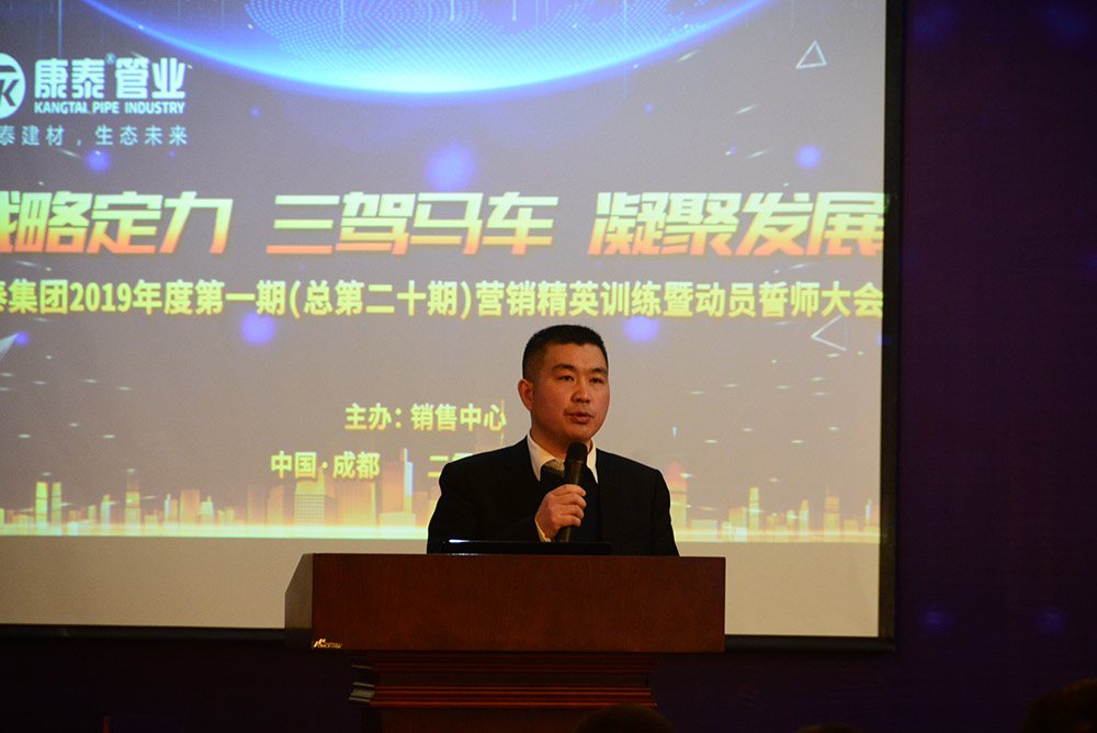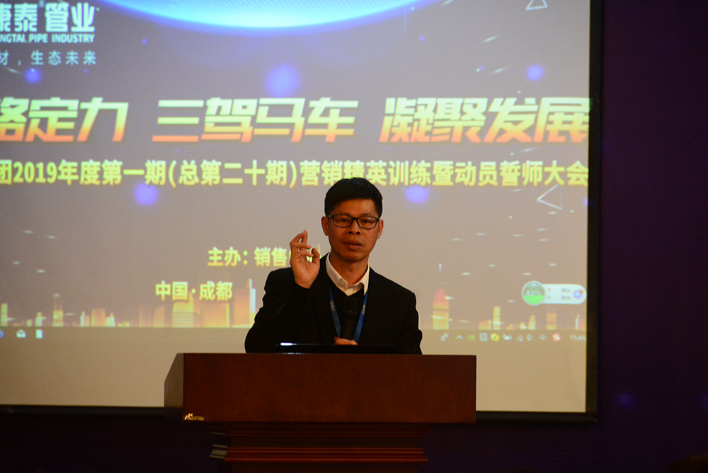 在全場(chǎng)熱烈的掌聲中,林總裁上臺(tái)作了熱情洋溢的新年致辭和動(dòng)員講話。林總裁首先對(duì)集團(tuán)公司在2018年取得的優(yōu)異業(yè)績(jī)向全體銷售人員的付出表示了感謝。林總裁表示,康泰的發(fā)展定位就是做中國(guó)工程集采第一供應(yīng)商,2019年是充滿挑戰(zhàn)的一年,也是為實(shí)現(xiàn)三年目標(biāo)打基礎(chǔ)的一年。我們要充分發(fā)揮三駕馬車——發(fā)展民建、發(fā)展網(wǎng)絡(luò)、發(fā)展市政的優(yōu)勢(shì),切實(shí)做到品牌強(qiáng)大、技術(shù)強(qiáng)大、網(wǎng)絡(luò)強(qiáng)大、團(tuán)隊(duì)強(qiáng)大,提升公司的核心競(jìng)爭(zhēng)力。
